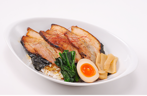自慢のチャーシューを炙り、ぜいたくに盛り付けました。チャーシューの香ばしさが食欲をそそります。